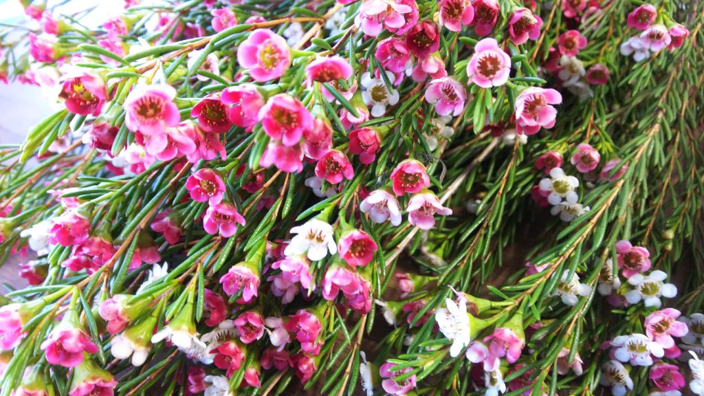 ”ワックスフラワー”の中でも、ボリューム感のある品種で、ピンクと白のお花がそれぞれを引き立てる人気のお花の一つです。